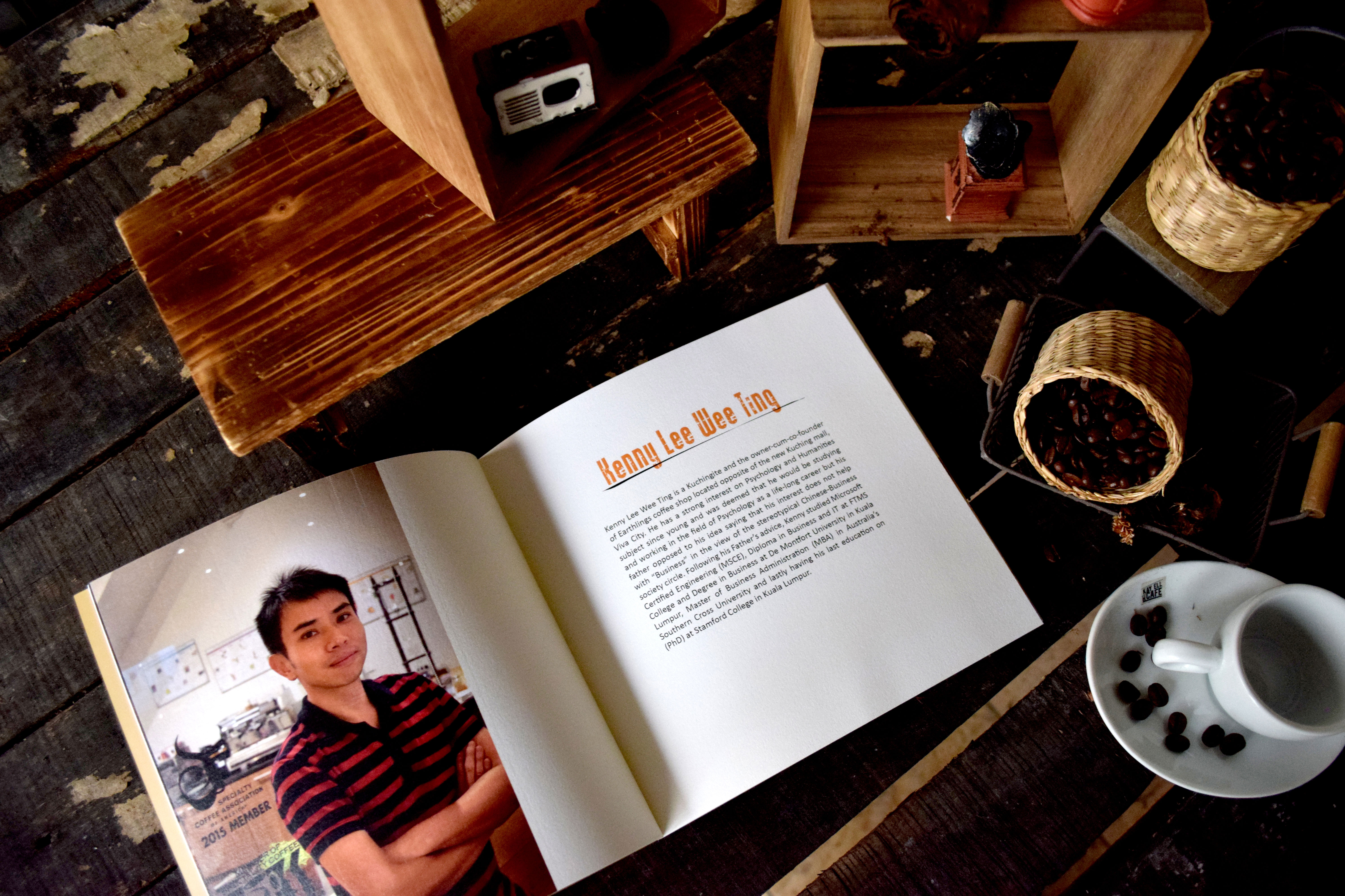 Design a documentary book and introduces Kenny Lee with his coffee's business.