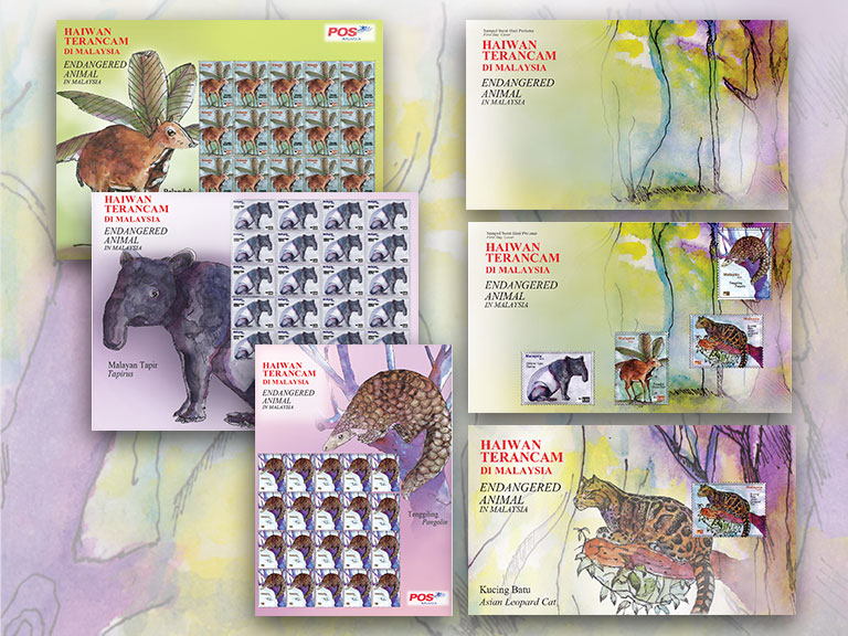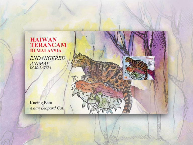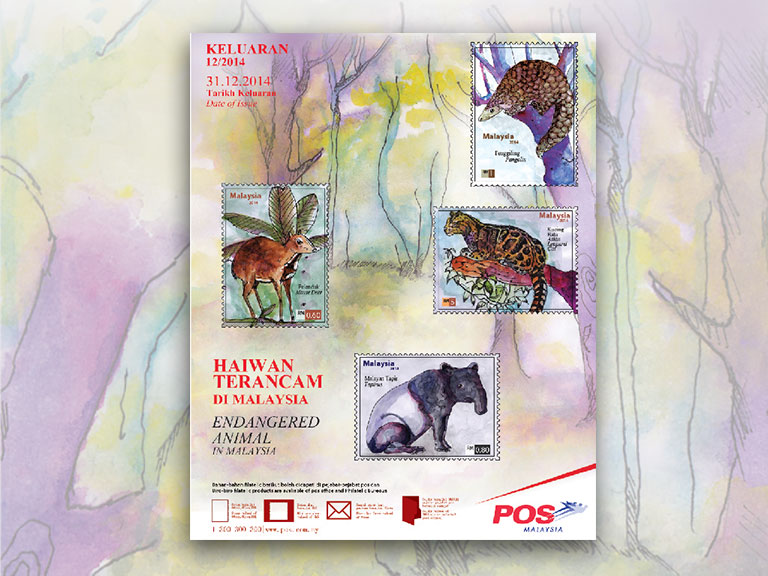 We used four different endangered animal that can found in Malaysia to present this philately design package. Four different endangered animal are Asian Leopard Cat, Pangolin, Tapirus and Mouse Deer. Concept is the wild animal that lives in the rainforest in Malaysia and create awareness to people. The reason we use the forest as our concept is because the forest is already destroy by people. This causes the animal lose their habitat. The illustration style is using watercolour plus pen and ink to bring out the hope and beautiful feelings of the forest.